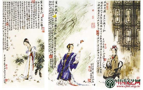 金陵红楼十二钗之黛玉葬花、宝钗戏蝶、凤姐弄权 冯 远